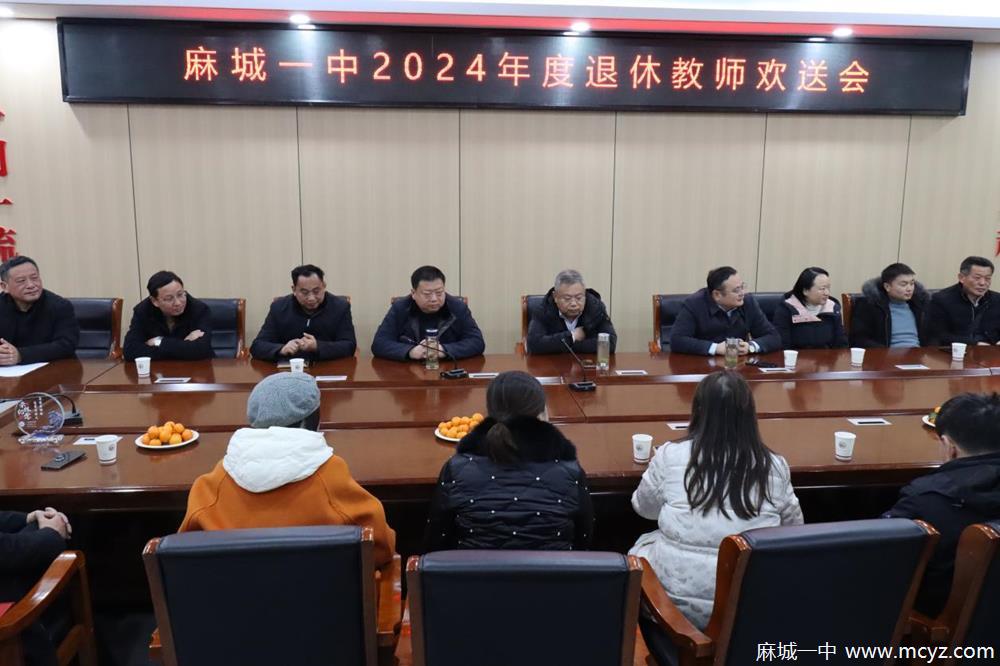 2025年1月18日上午十点半,麻城一中工会在学校笃行楼一楼会议室为12位老教师举办一场感动而又隆重的欢送会。麻城一中党委书记吴宏文、校长张欢及全体党委成员和各学科教研组长出席本次欢送会。欢送会由工会主席陈汉华主持。