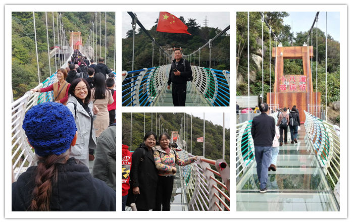 景交车在崎岖蜿蜒的山路上沿着上下起伏360度的弯道行驶,景交车司机车技娴熟,安全把我们送到桃花潭体验玻璃桥和玻璃滑道。