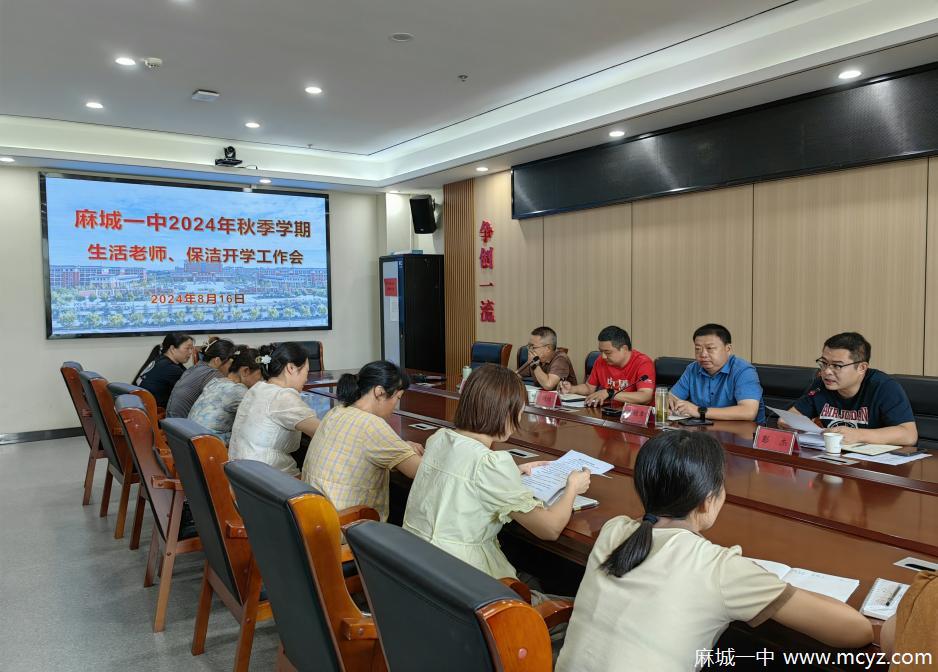 8月16日下午,麻城一中2024年秋生活老师、保洁员工业务培训会在笃行楼一楼召开。参加会议的有学校党委副书记、副校长彭稳章,政教处主任胡欣,政教处副主任薛全员、彭杰,负责保洁工作的吴淑娟老师及全体生活老师、保洁员工,会议由彭杰主持。