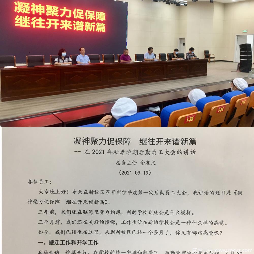 吴校长指出一中的新校区是麻城首屈一指的校园,一中的学子是全市的佼佼者,一中的食堂既要体现出“公益性、非营利性”,也要以最高的标准要求自己,成为同行业的标杆和示范。后勤的工作是很有意义的工作,员工的言行要与一中的环境相符,为麻城的优秀学子圆梦助力。若干年后,这段工作也会成为自己人生中的亮点。我们到了新的校园,更要搞好后勤保障工作,以让学生满意,家长满意,社会满意。希望员工尽心尽力,齐心协力,增强服务意识,提高服务质量,提升服务水平,为一中在新环境下得到社会家长师生认同而共同努力。