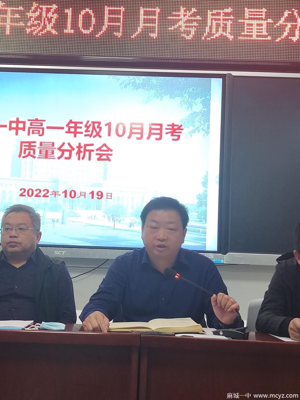 邓主任从与兄弟学校之间各分数段、平均分、优秀率、一本率等方面分析了月考成绩,认为在总体成绩良好的情况下,高分层要及时发现问题,形成有厚度的高分梯队。他从四方面对后阶段工作做出安排,第一,紧抓年级常规管理工作,安全教育到位,疫情防控到位,心理疏导到位,日常巡查到位;第二,紧抓学生习惯培养,从生活、饮食、出勤、听课、作业落实、自主学习、反思总结等方面加强引导,为长期学习打好基础;第三,紧抓教育教学工作的落实,搞好备课组教研活动,落实日常教学反馈检查;第四,介绍了年级对选课走班的规划。