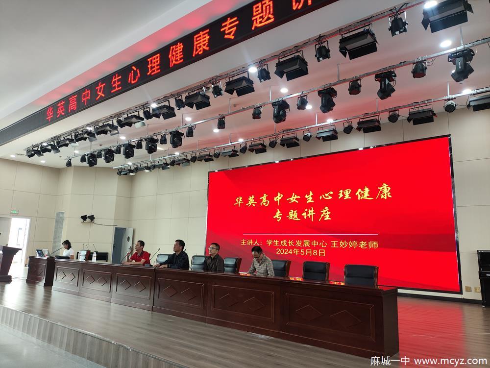 2024年5月8日,为促进女学生心理健康发展,培养学生荣辱观是非观,华英高一高二年级和学生成长发展中心联合举办了主题为“我成长 我健康”的女生心理健康知识专题讲座。麻城一中工会主席、华英高中负责人陈汉华,学生成长发展中心主任罗学文,高一年级主任周海燕,高二年级主任赵阳,学生成长发展中心王妙婷老师和吴淑娟老师出席活动,讲座由赵阳主持。