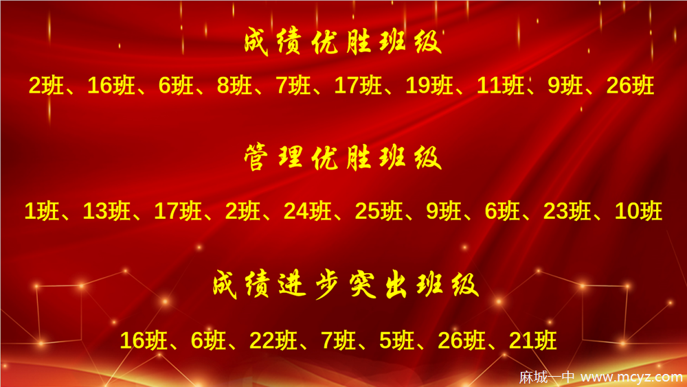 年级副主任王值锋宣读成绩优胜班级、管理优胜班级、进步突出班级的受表彰名单,与会各位领导向受表彰的班级的班长颁发奖牌。学生集体荣誉感爆满,极大的鼓舞了班级士气和斗志。