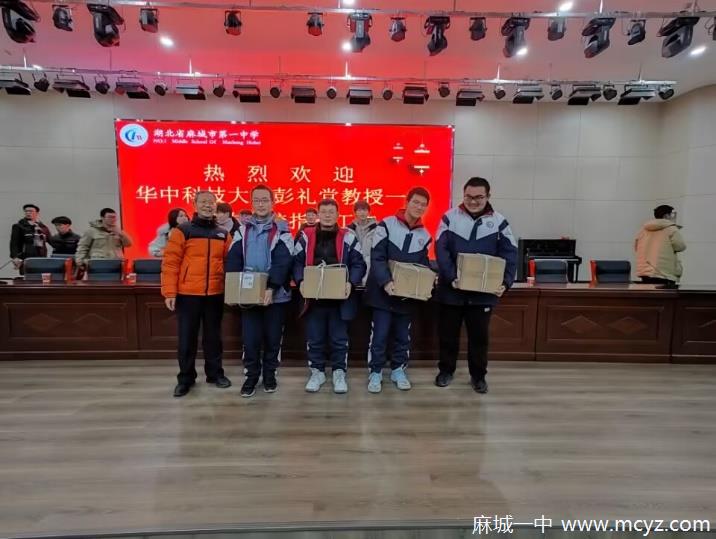 2024年1月24日下午,华中科技大学彭礼堂教授带领十余名麻城一中优秀毕业生莅临我校,为高一理科班千余学子开展经验分享交流活动。活动由高一副主任彭科主持,各班班主任全程陪同。